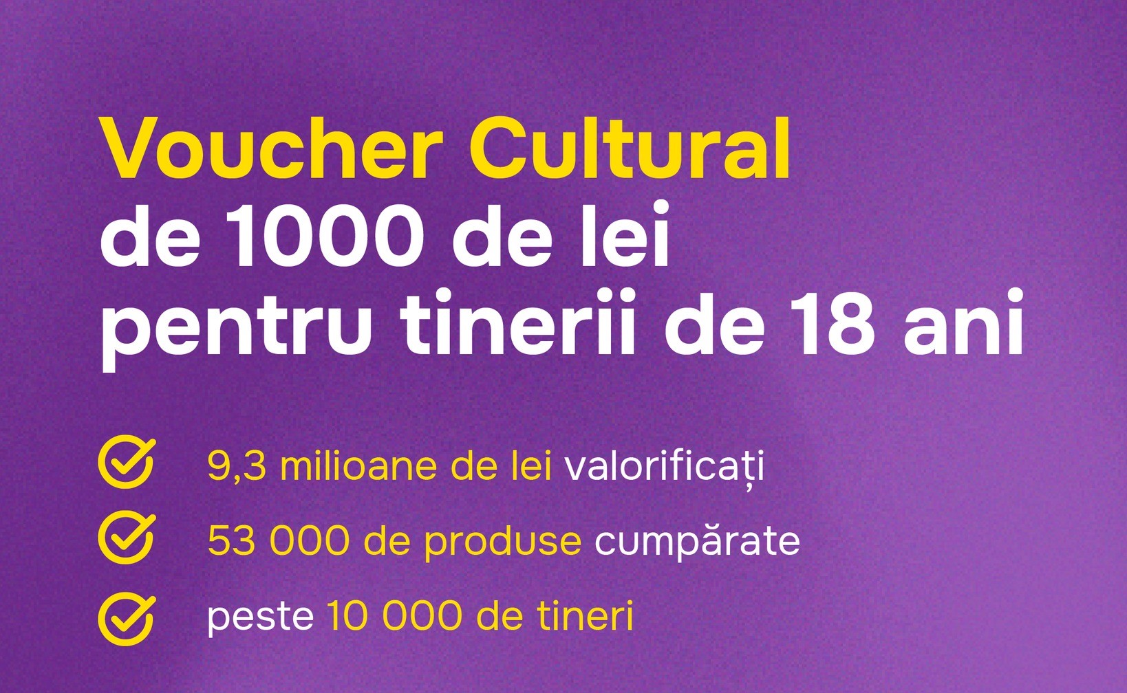 De „Voucherul cultural” pot beneficia tinerii care au împlinit 18 ani și dețin semnătură digitală. Până în prezent, peste 10 000 de tineri au folosit voucherele, achiziționând aproximativ 53 000 de produse culturale în valoare de peste 9 milioane de lei.