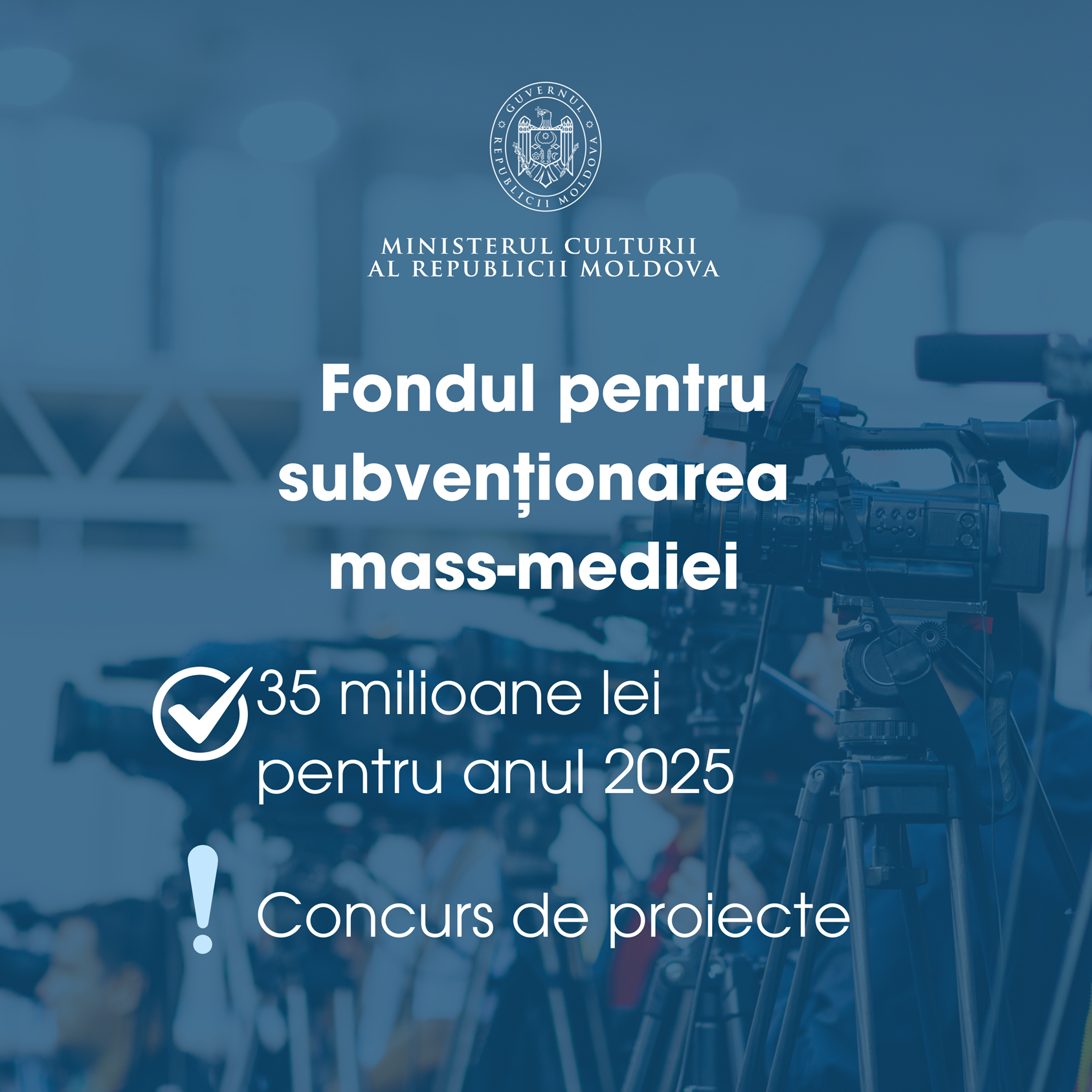 Ministerul Culturii al Republicii Moldova anunță lansarea celui de-al doilea concurs pentru acordarea de subvenții instituțiilor mass-media, în conformitate cu prevederile Legii nr. 50/2024 privind Fondul pentru subvenționarea mass-mediei, Regulamentului concursului și Ordinului Ministrului Culturii nr. 279 din 22.07.2025.